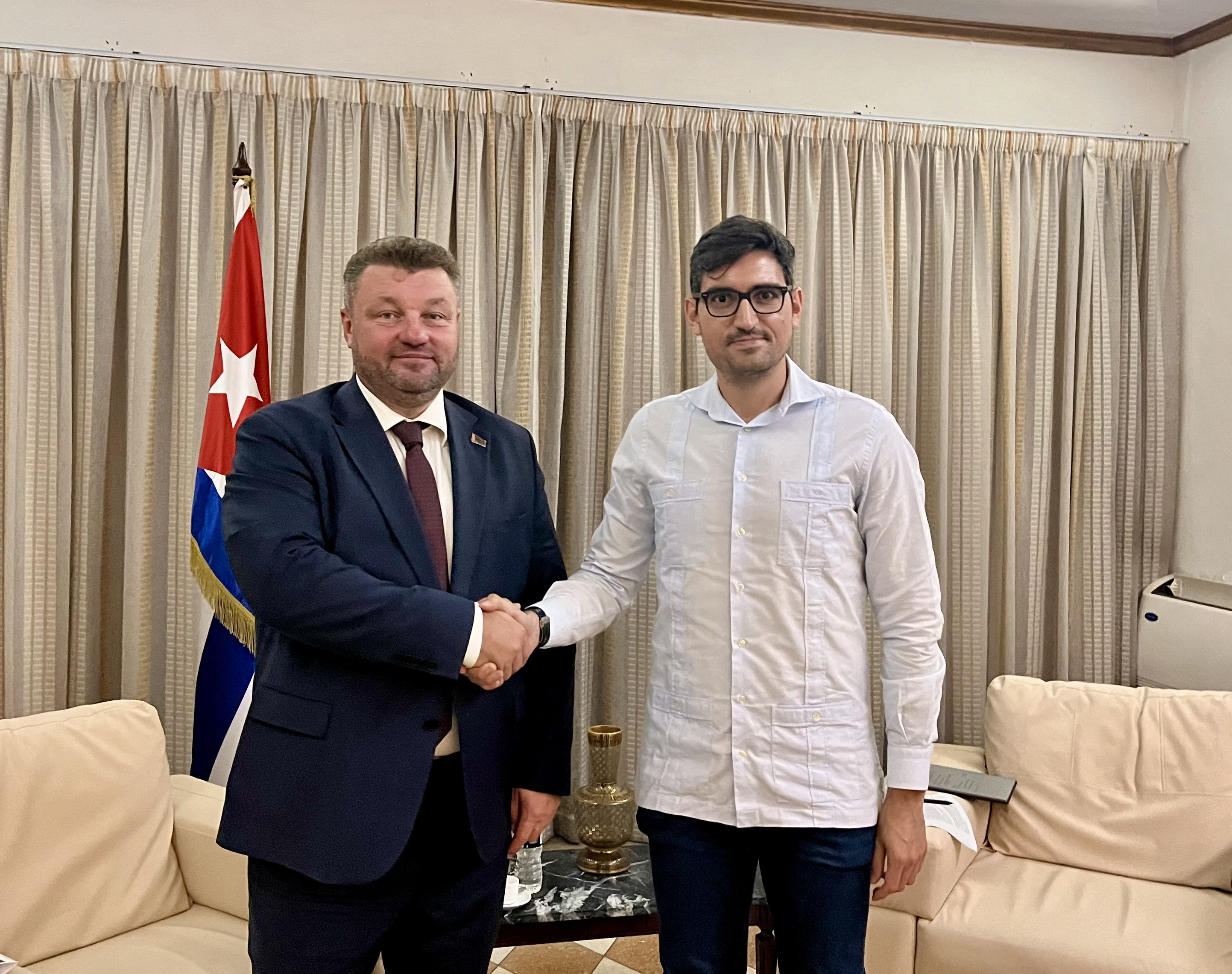 14.03.2026 г.El 12 de marzo de 2026, el Embajador Extraordinario y Plenipotenciario de la República de Belarús en la República de Cuba, Vitali Barchuk, se reunió con el Primer Viceministro de Comercio Exterior e Inversión Extranjera de la República de Cuba y Copresidente de la Comisión Mixta Belaruso-Cubana para la Cooperación Comercial y Económica, Carlos Luis Jorge Méndez.